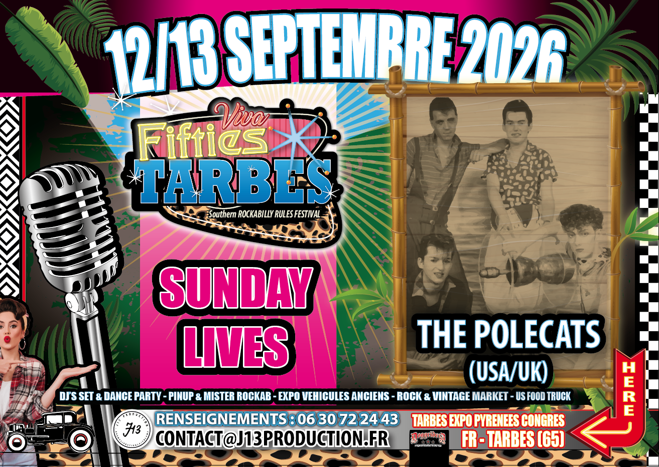 Festival VIVA FIFTIES TARBES 2026, samedi 12 septembre 2026 et dimanche 13 septembre 2026. Concerts rockab, rockabilly, live concert, têtes d'affiches international, car and bike show, election pi-up, stands rock, village food truck, village tattoo, show & spectacle, danse rock...